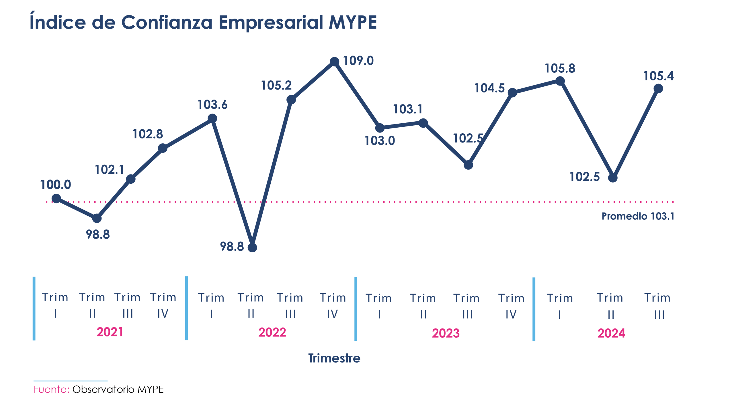Al iniciar el año, las microempresas contaban con un Índice de Confianza Empresarial de 105.8 puntos, continuando con una tendencia positiva que venía desde el año anterior. En el segundo trimestre, sin embargo, este índice se contrajo a 102.2 puntos, reflejando una visión menos optimista de los empresarios sobre la situación económica del país en ese periodo. Esto pudo estar influenciado por la incertidumbre generada por el proceso electoral, así como por otros factores como la inflación, los fenómenos meteorológicos y las intensas lluvias que afectaron al país.