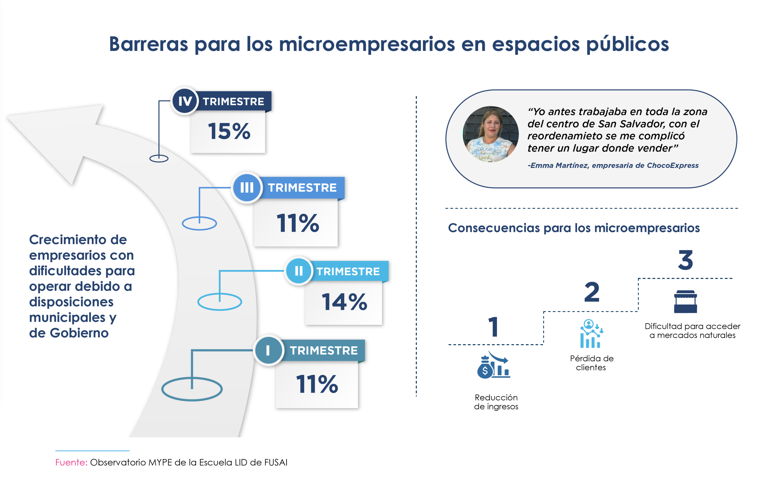 Estos desafíos revelan que, aunque los resultados del informe reflejan una dinámica empresarial favorable, es fundamental atender varias áreas críticas a fin de impedir que el sector se vaya relegando en su crecimiento. Para ello, es necesario implementar políticas públicas que promuevan la integración del sector en nuevas cadenas de valor, fomentando su participación en mercados más amplios. Según, el investigador del Observatorio Mype, Francisco Góchez, además deben diseñarse estrategias que reduzcan o simplifiquen los obstáculos operativos, como permisos, regulaciones y trámites, lo que permite que estas empresas se formalicen. Añadió, que para enfrentar la competencia, los empresarios deben encontrar formas de diversificar su oferta de productos y servicios y diferenciarse. Observó que las crecientes conflictos por las ordenanzas locales de reordenamiento deben ser atendidas, ya que de forma creciente los microempresarios señalan problemas para acceder a los espacio públicos que antes eran sus mercados naturales.